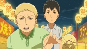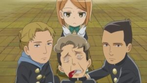 After the race of the last day, Hange and the other upperclassmen challenge Eren’s class to a test of courage. That night they arrive at school, where Hange and Levi explain the rules: they must visit the art, music, and science rooms and write their names on the blackboard. The class splits into two groups and head out, encountering various ghostly apparitions said to be the “Seven Wonders of Attack Junior High”; there is a rumor that anyone who sees all seven will be cursed with misfortune. Finally reaching the gym, they find that the ghosts were, in fact, a prank orchestrated by the upperclassmen. Erwin Smith, the club’s advisor, reveals that one spirit, the woman with black hair whom Christa encountered, was, in fact, a real ghost.